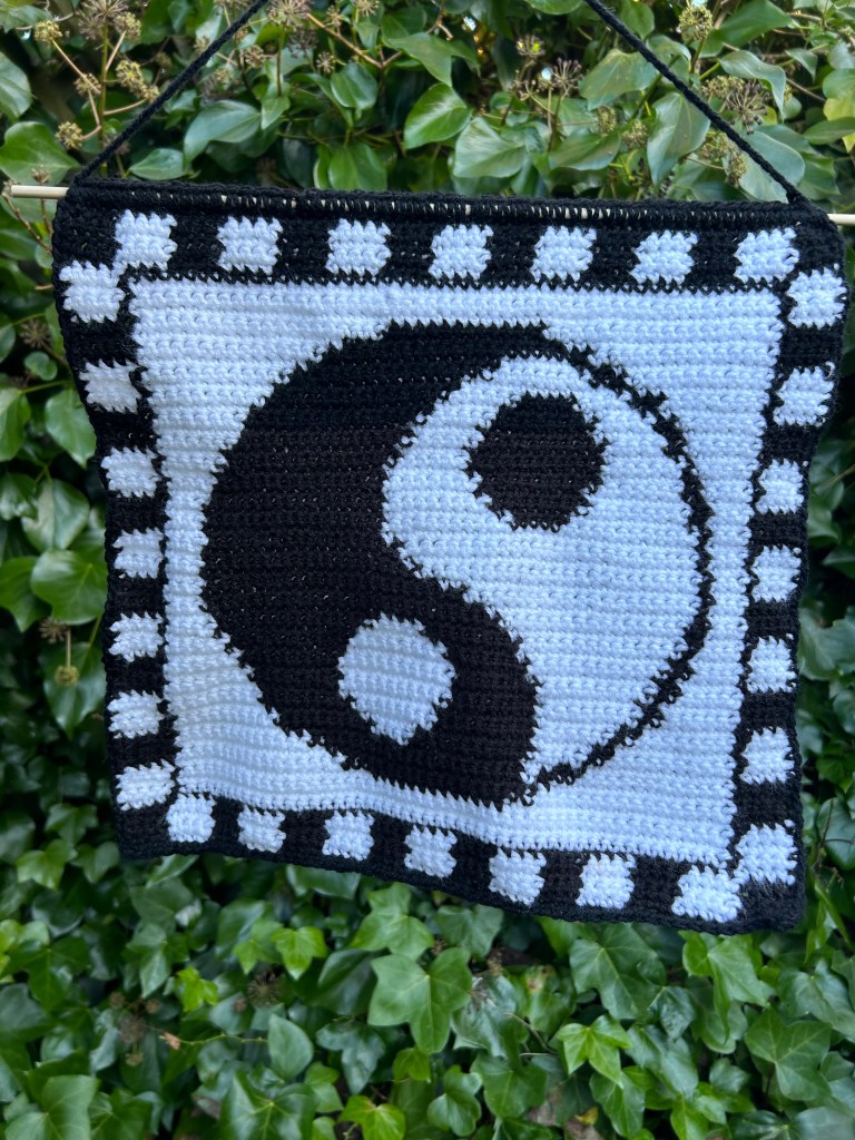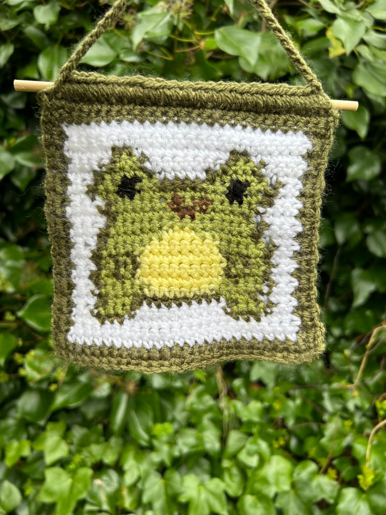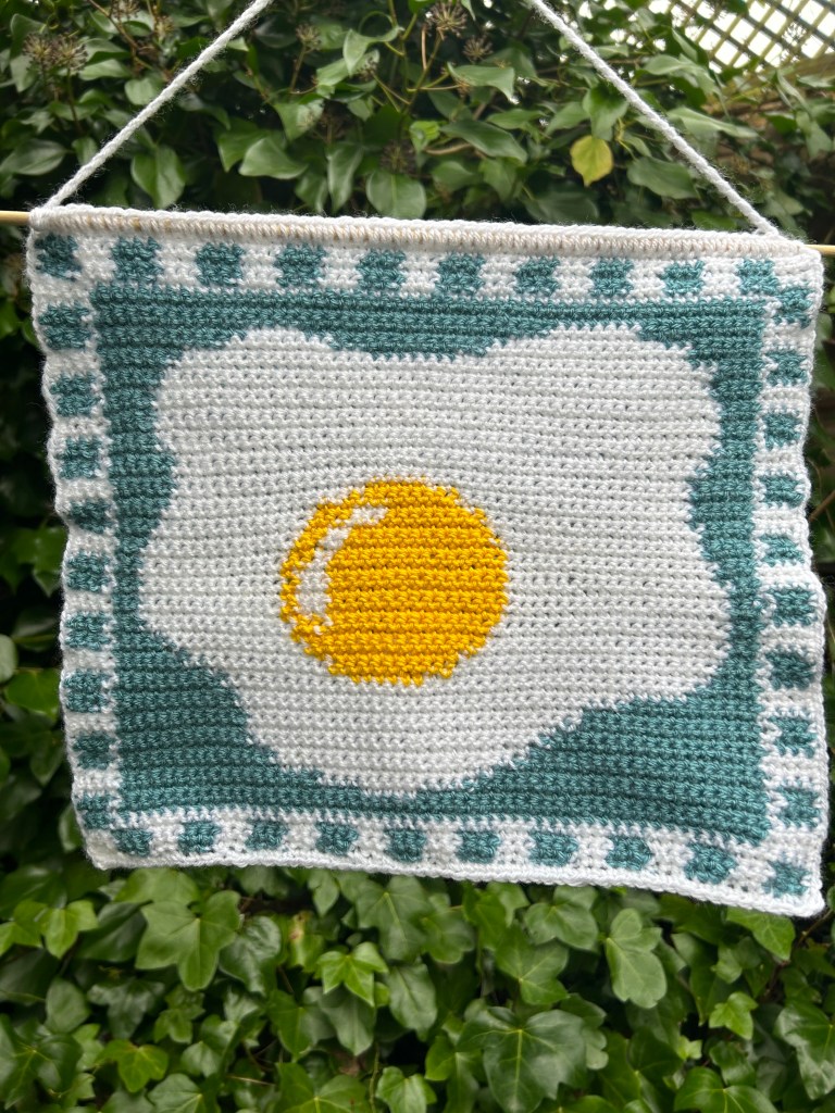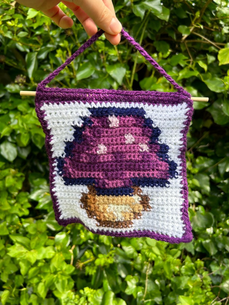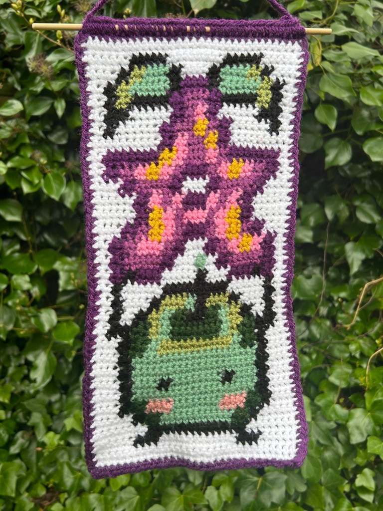 All crochet tapestries are made by hand, primarily using DK acrylic wool and wooden dowel rods. I make tapestries based on things I like or am interested in so they are an insight to my personality in a way! All patterns made by me and are available on my Etsy shop – to visit click the button below.