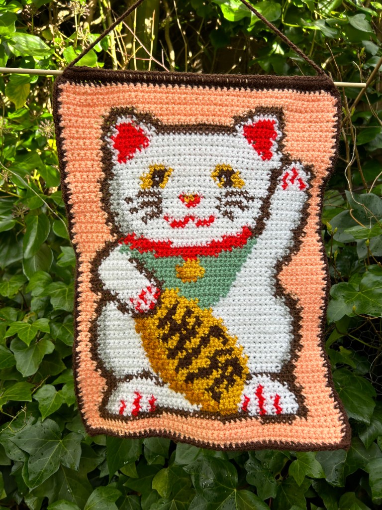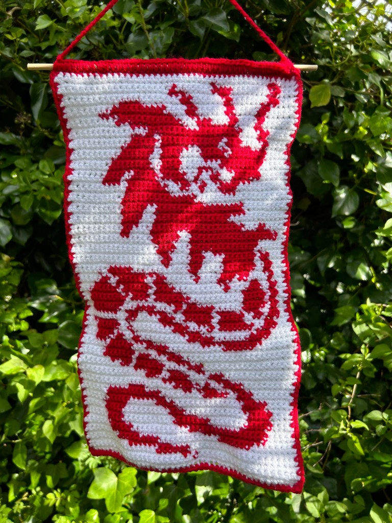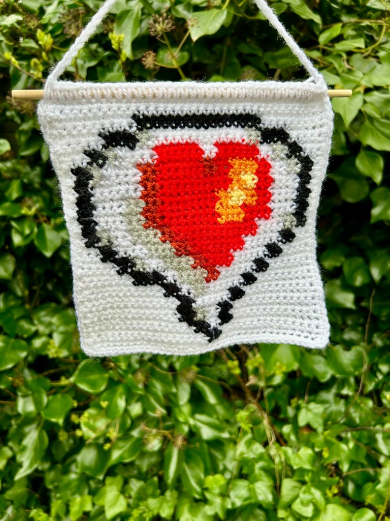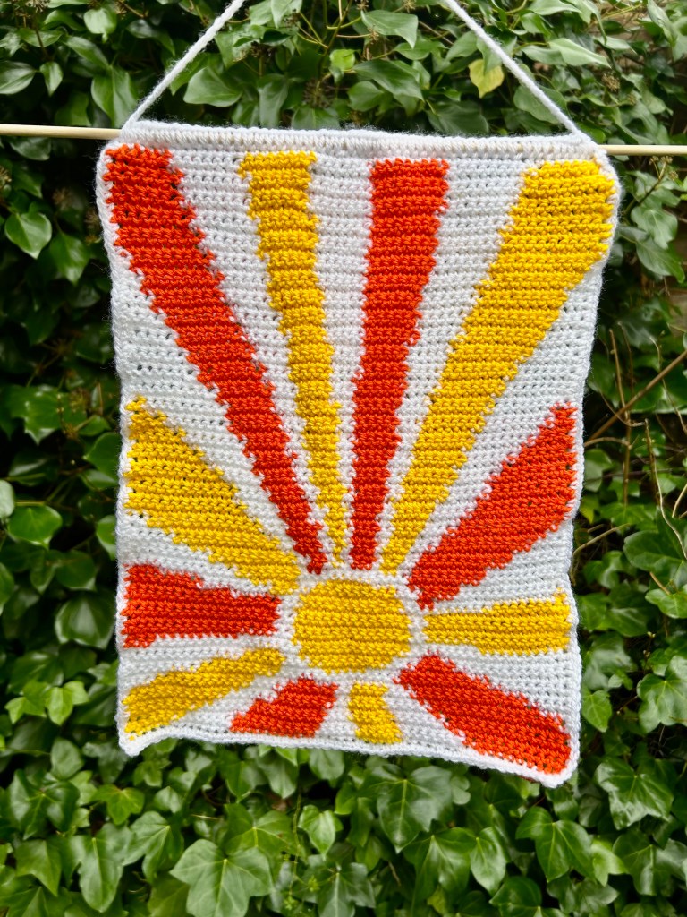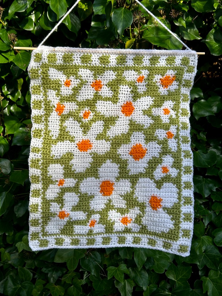 All crochet tapestries are made by hand, primarily using DK acrylic wool and wooden dowel rods. I make tapestries based on things I like or am interested in so they are an insight to my personality in a way! All patterns made by me and are available on my Etsy shop – to visit click the button below.